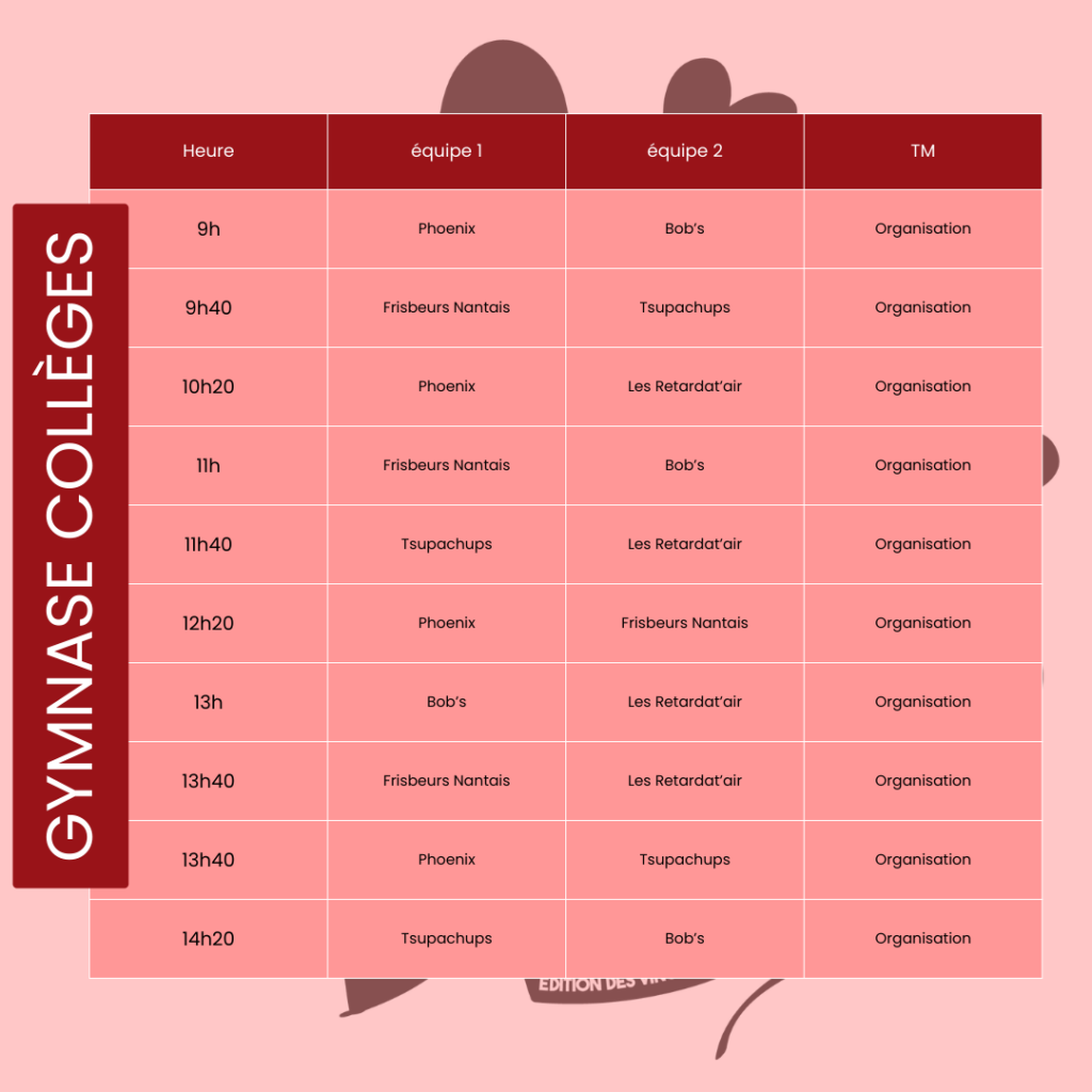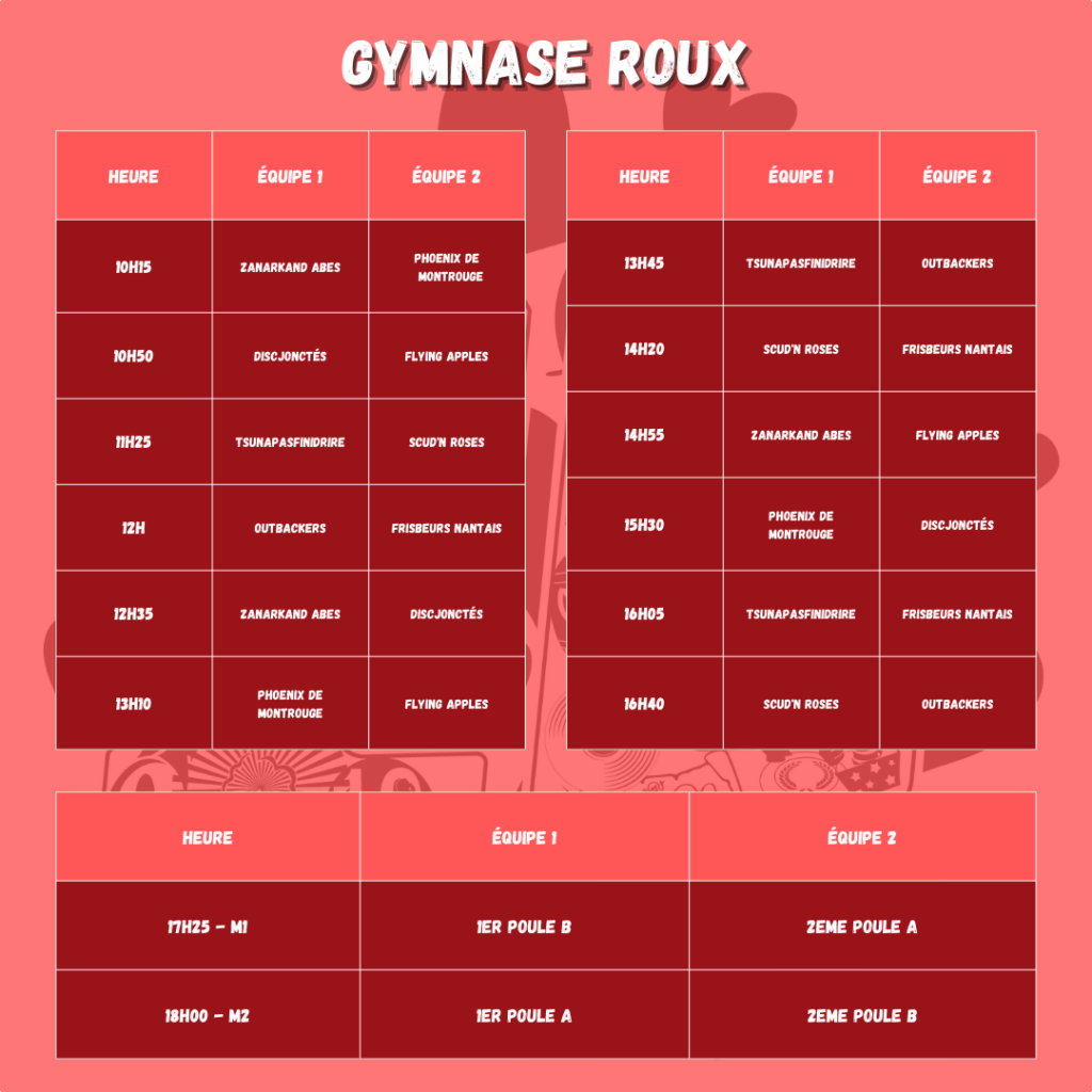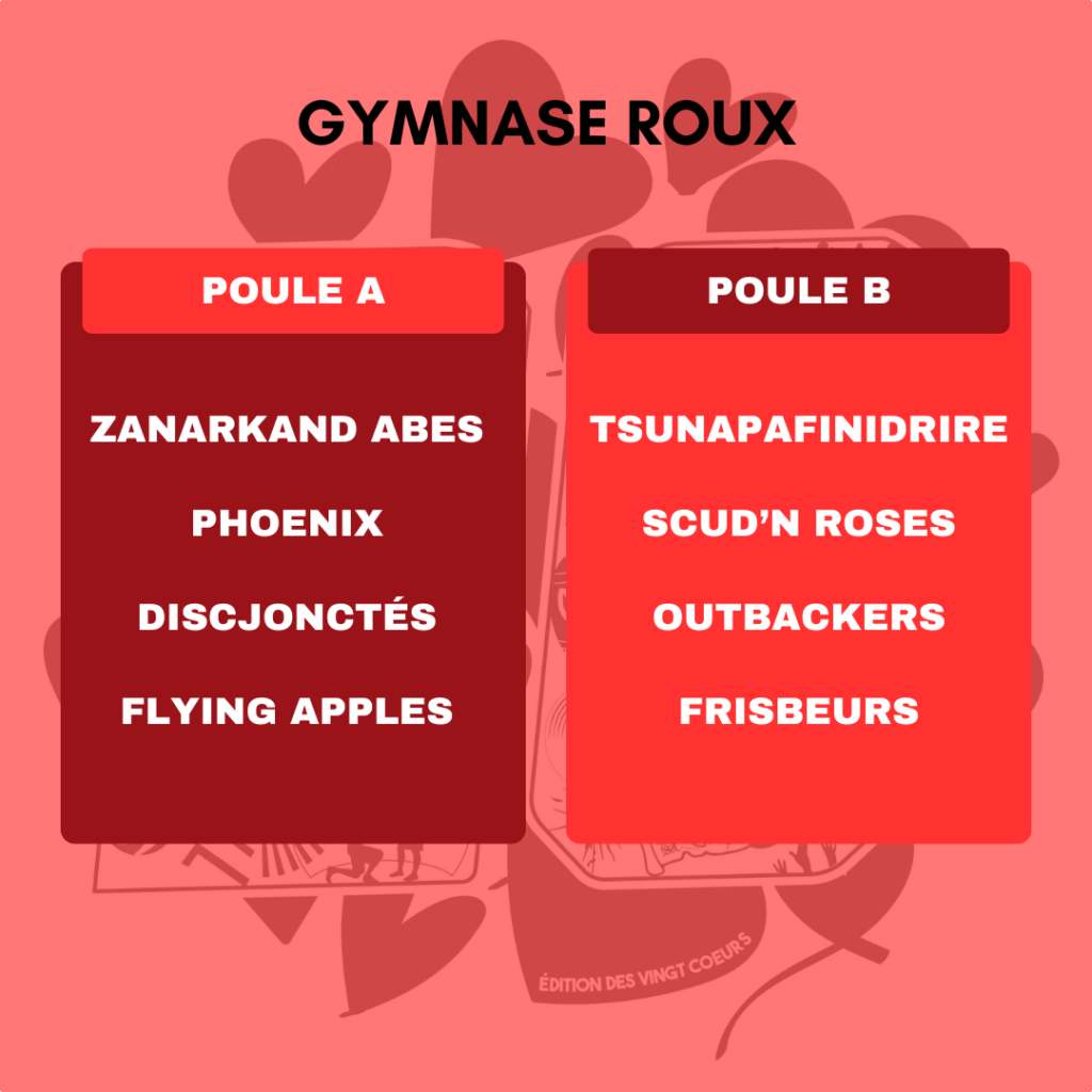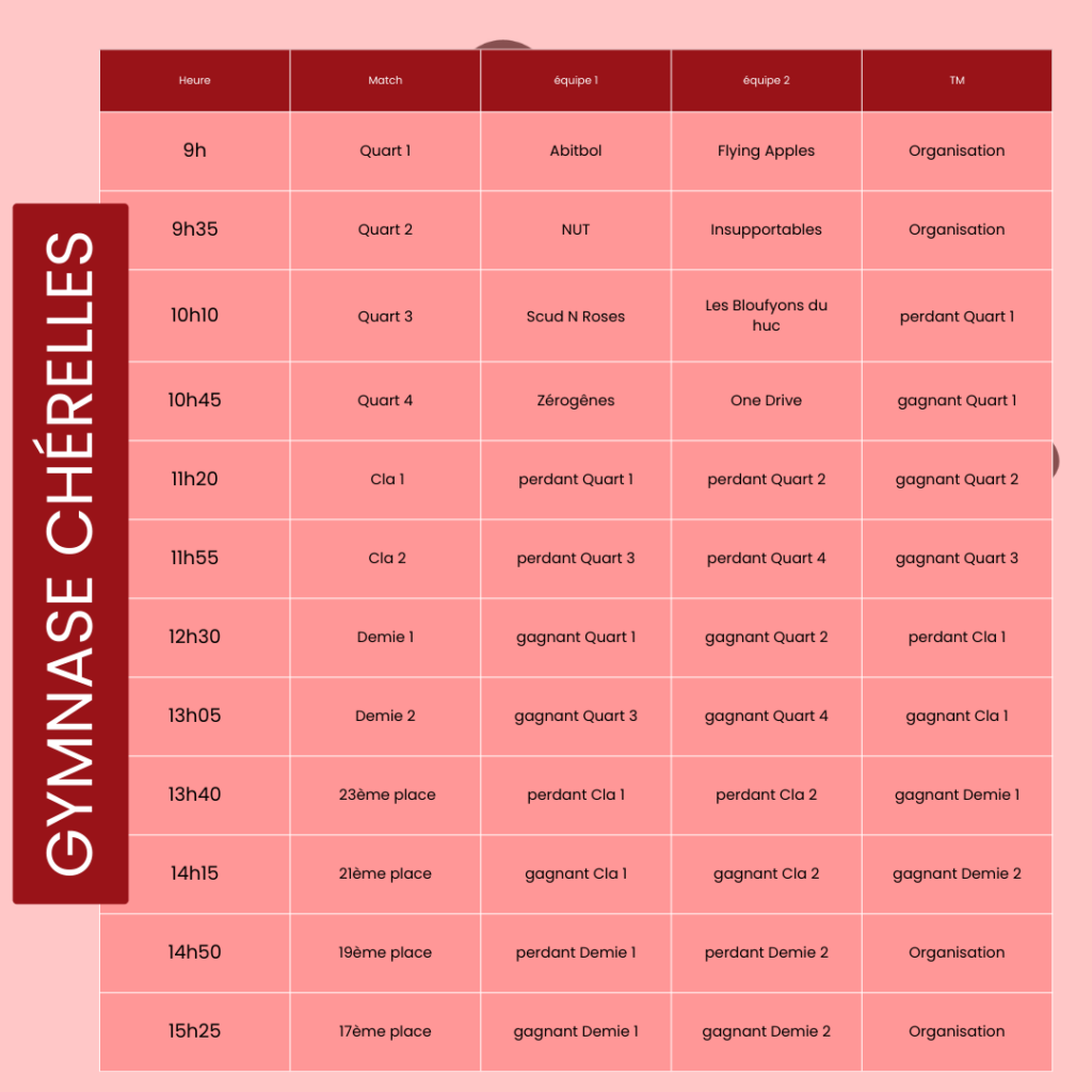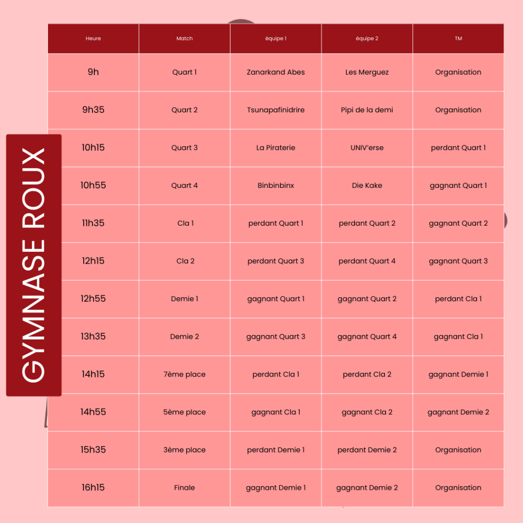 Finale du tournoi au gymnase Roux à 16h15. Toutes les équipes auront fini de jouer et pourront venir assister à la finale.