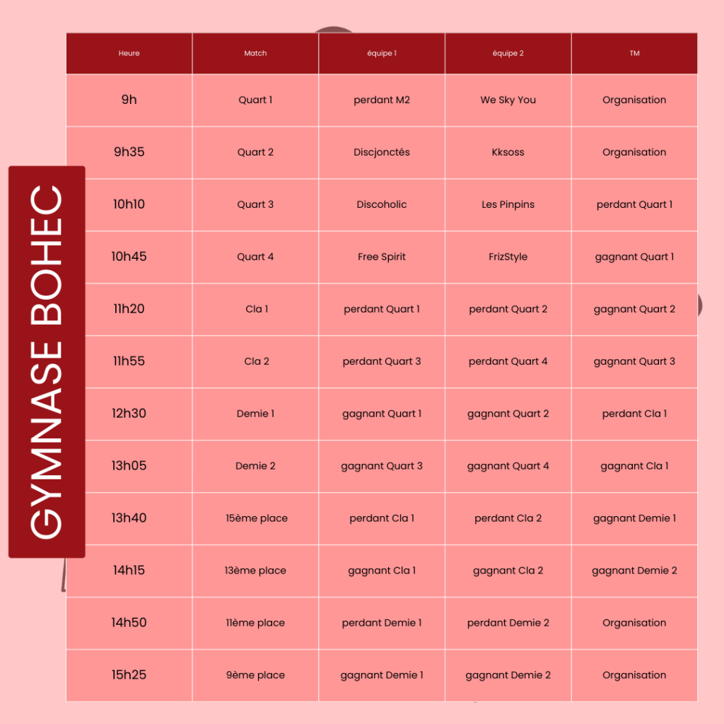 Le dimanche sera consacré aux matchs de classement (3 matchs par équipe).